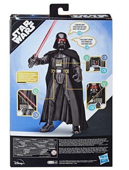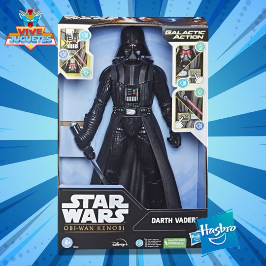 Imagina increíbles aventuras en la galaxia de Star Wars con este juguete interactivo Galactic Action de Darth Vader a escala de 30 cm. Los niños y niñas se divertirán activando distintas combinaciones de luces, sonidos y frases: simplemente presiona los 3 botones en el pecho y cinturón de Darth Vader para activarlas. Mira cómo sus ojos y sable de luz brillan rojo, oye los sonidos de la galaxia y escucha 5 frases diferentes. Los niños a partir de 4 años se divertirán imaginando épicas aventuras con la figura electrónica de Darth Vader, la cual es un gran regalo o adición a toda colección Star Wars.